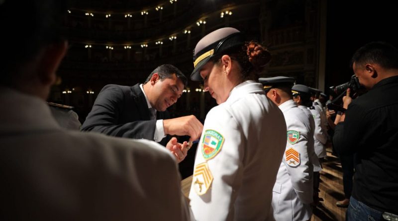 O governador do Amazonas, Wilson Lima, anunciou, na noite desta quinta-feira (21/04), que começará a pagar o Abono Fardamento dos Policiais Militares e Bombeiros Militares a partir de maio e que irá realizar as promoções de abril das duas corporações. O anúncio foi feito durante a Solenidade do Dia de Tiradentes, patrono da Polícia Militar, no Teatro Amazonas, Centro de Manaus.